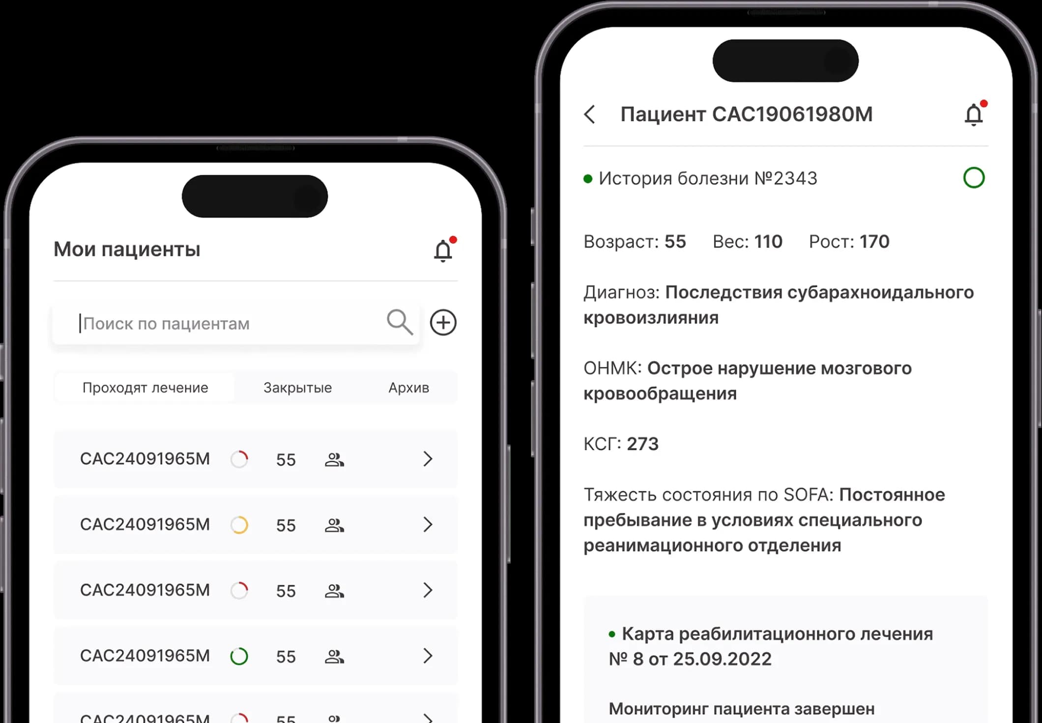 - Приложение упрощает ведение пациента в отделении ранней медицинской реабилитации