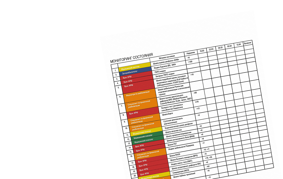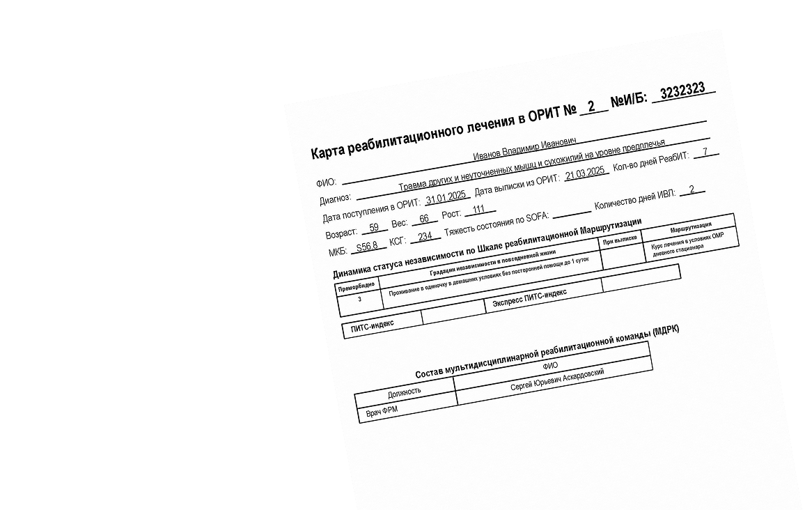 После недельного мониторинга по шкалам вы получаете унифицированную карту реабилитационного лечения в формате PDF.